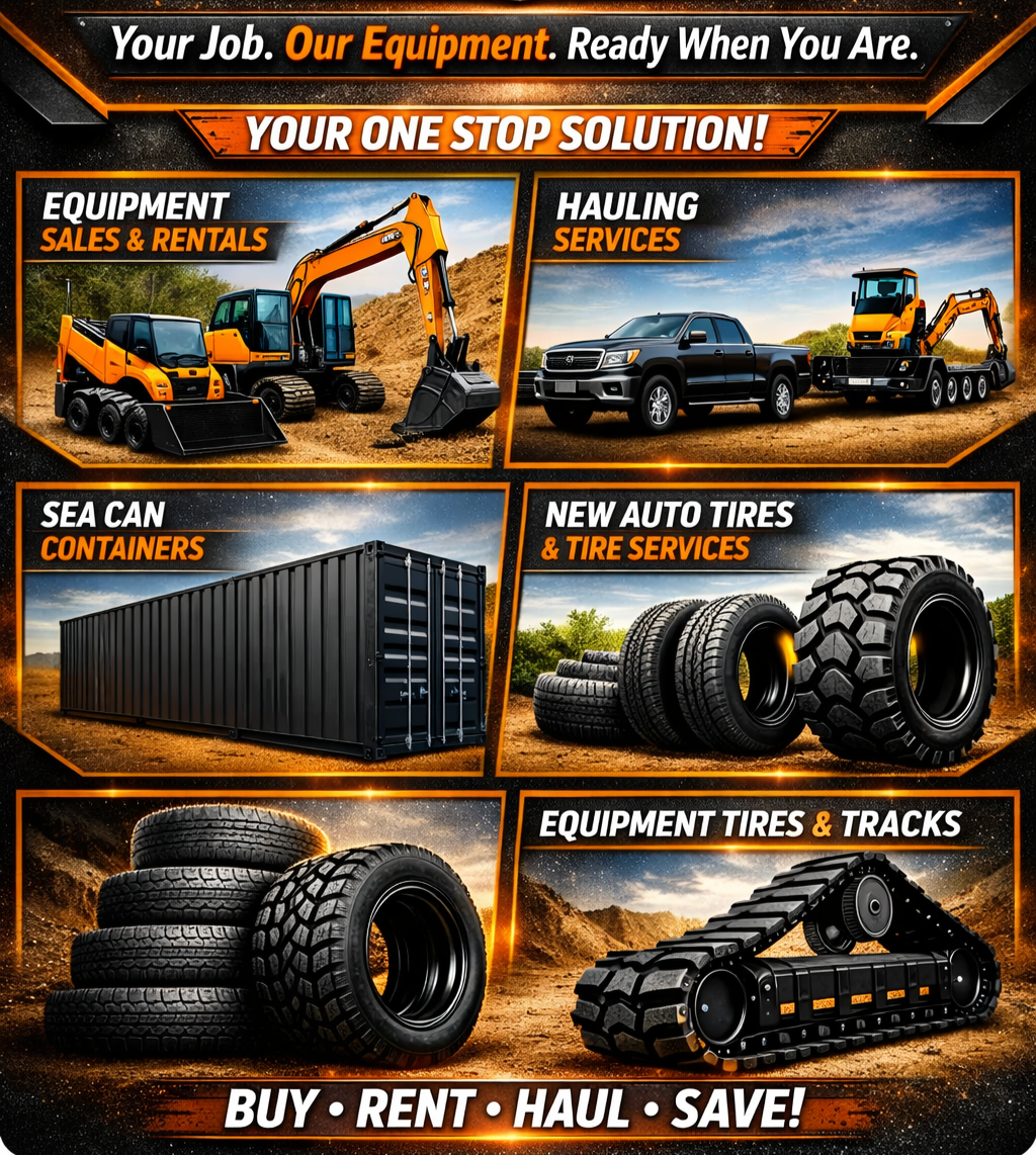 Tracks +Tire & Rim Sales + Tire Care Services We supply brand‑new, never‑used tires, rims, and heavy‑duty tracks for equipment of all sizes. From job‑site machines to trailers and vehicles, we’ve got the right fit for your work.